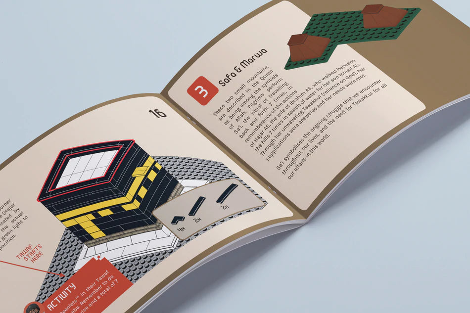 The set is made of 8 sections, including the Kaaba, Safa & Marwa, Mount Arafat, Mina, Muzdalifah, Jamarat and Hady. A useful tool for parents and teachers alike to teach the various rituals of Hajj effectively and creatively, it brings hours of fun for the kids, and quality time for the family!