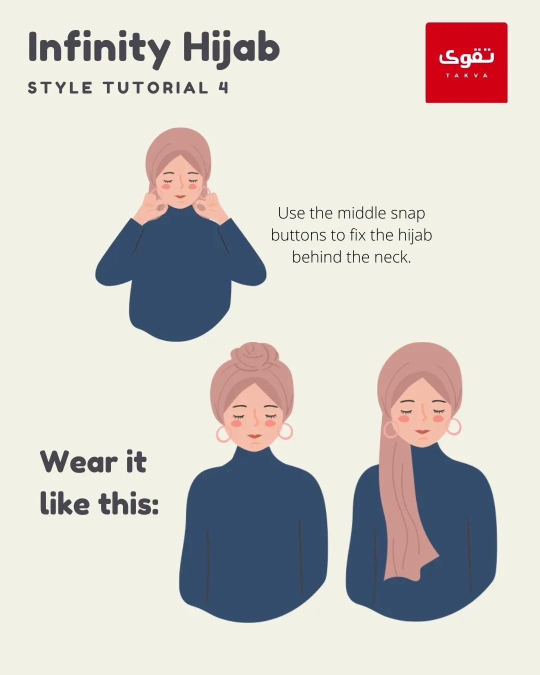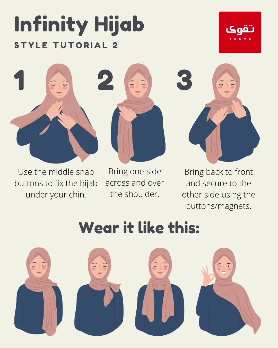 Magnets and snap buttons are strategically placed to keep your style in place. You’ll never have to worry again about a bad hijab day.