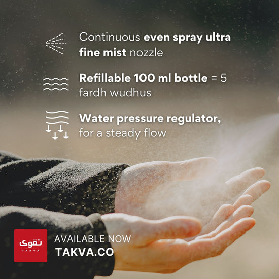 • Refillable 100 ml bottle = 5 fardh wudhus.