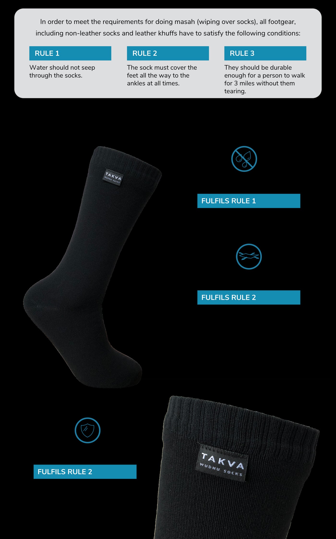 Because seeing is believing, we personally put together a video of the TAKVA Wudhu Socks being tested for its fit, waterproof-ability and durability.